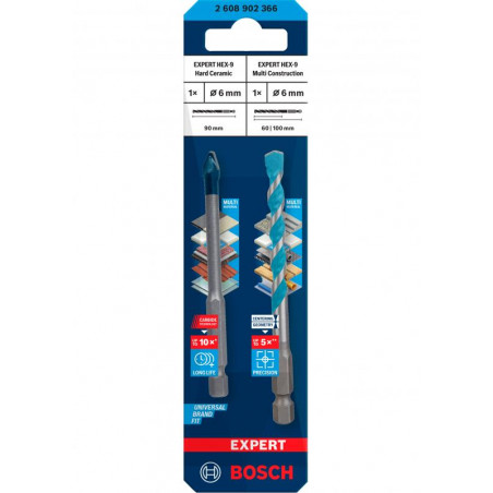 EXPERT Foret polyvalent HEX-9 MultiConstruction + EXPERT Foret à carrelage HEX-9 Hard Ceramic, 6mm