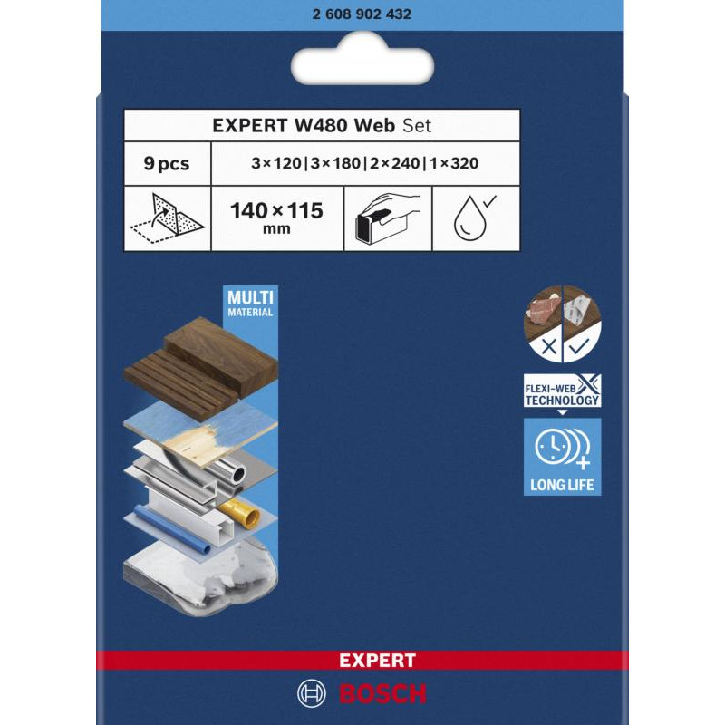 EXPERT Set 9-pièces Fueille abrasif Web W480 115 x 140 mm, 3x G120; 3x G180, 2x G240; 1x G320 (online)