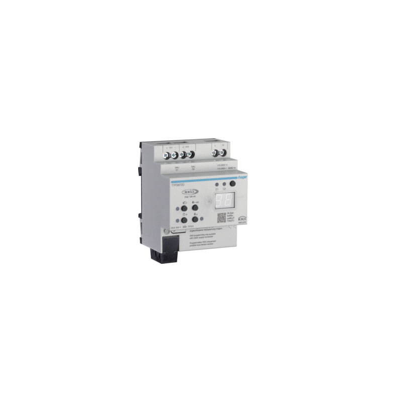 Emballage: 1 - 1 - 24 - 576 Marque: HagerRéférence: TYFS672DEAN: 3250610050231Description: Module DALI2, 2 sorties, ETS