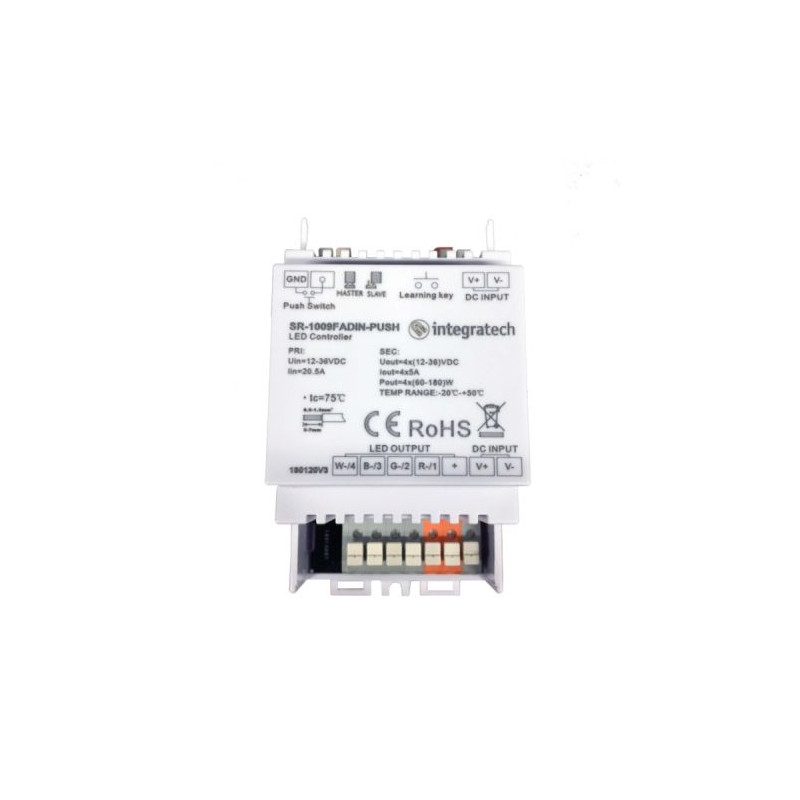 Emballage: 1 - 46Marque: IntegratechRéférence: SR-1009PDDINEAN: 5420076232207Description: Récepteur RF + push 12-36VDC sortie PWM 4x5A DIN