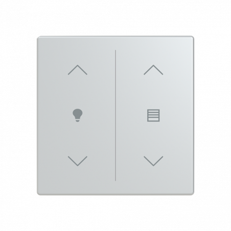 Description: COVER PLATE WITH LEGEND WITH SYMBOL ''ARROWS/VENETIAN BLIND'' AND ''DIMMER'' ALUMINIUM SILVER - PLATFORM 63