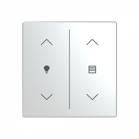 Description: COVER PLATE WITH LEGEND WITH SYMBOL ''ARROWS/VENETIAN BLIND'' AND ''DIMMER'' STAINLESS STEEL - PURE STAINLESS STEEL