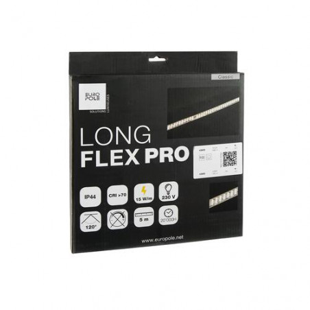 Marque: UnibrightRéférence: 43701EAN: 3666592005396Description: Pack 5m 4000K 12W/m 230V / Pack bandeau Led 5m LONG FLEX PRO 4000K 12W/m 1200lm/m 230VAC