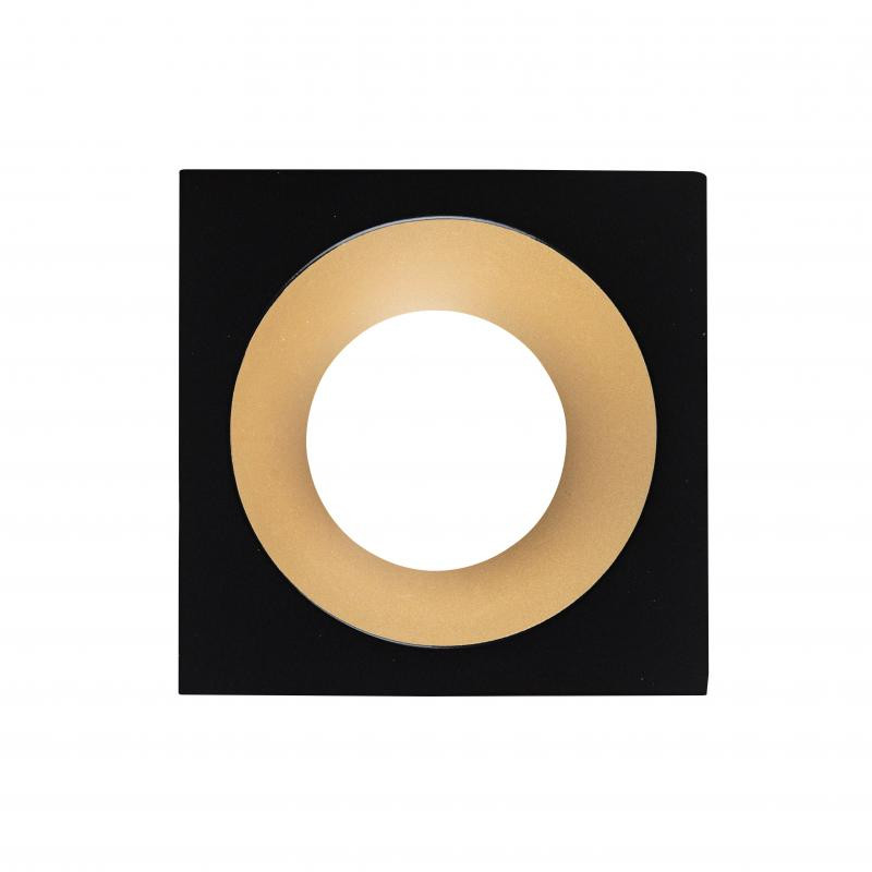 Description: Afdekring vierkant zwart mat / goud / LED'UP collerette universal esthet. carrée noir mat/doré fixe