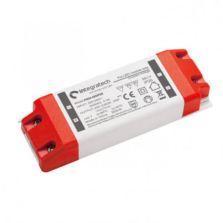 Emballage: 1 - 100Marque: IntegratechRéférence: PS24-020IP20EAN: 5404042515815Description: Alimentation 24VDC 20W IP20 pour rubans LED