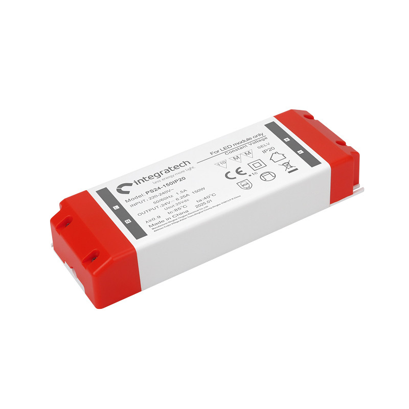 Emballage: 1 - 20Marque: IntegratechRéférence: PS24-150IP20EAN: 5404042515853Description: Alimentation 24VDC 150W IP20 pour rubans LED