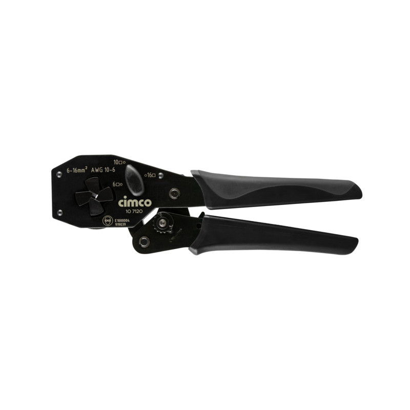 Emballage: 1Référence: 107120Marque: CimcoRéférence fabricant: 107120EAN: 4021103100776Description: PINCE À SERTIR POUR EMBOUTS POWER-CRIMP COMFORT 6 - 16MM²