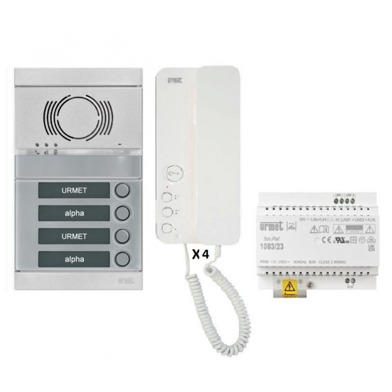 Emballage: 1Référence: 1083104GVDEMarque: UrmetRéférence fabricant: 1083104GVDEEAN: 5400949004773Description: KIT AUDIO 4 APPARTEMENTS PROPROGRAMMÉ - GRIS