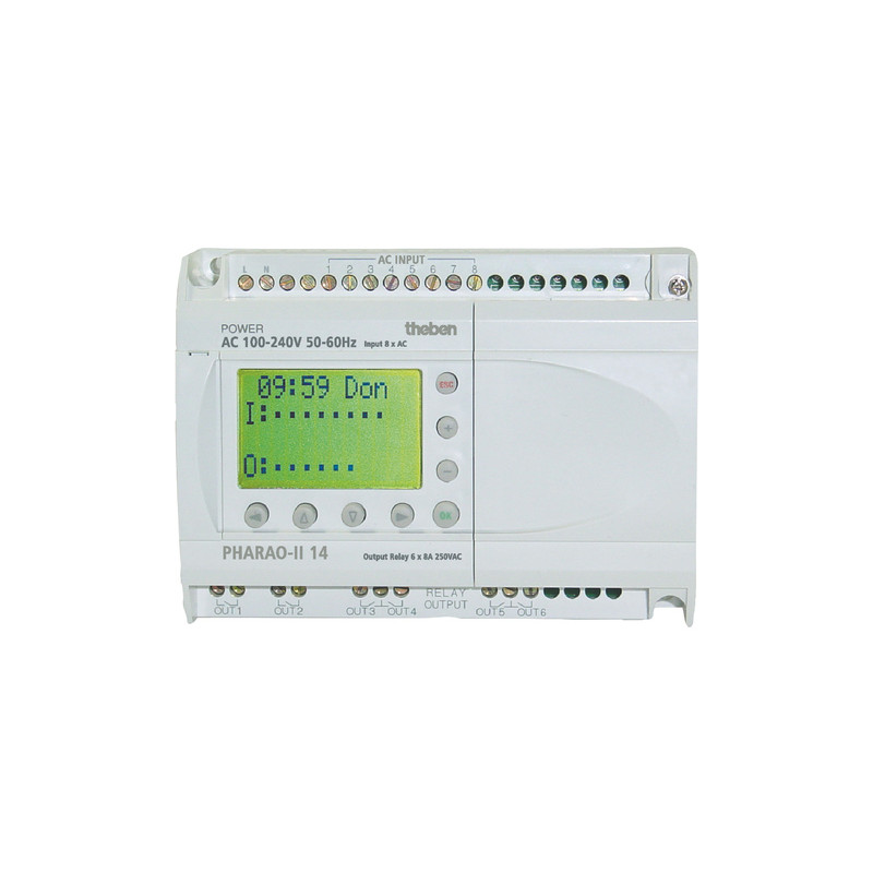 Emballage: 1Référence: PHARAO II 14Marque: TEMPOLECRéférence fabricant: 215072EAN: 4003468575093Description: MODULE LOGIQUE PROGRAMMABLE 230VAC 8IN / 6OUT 8A