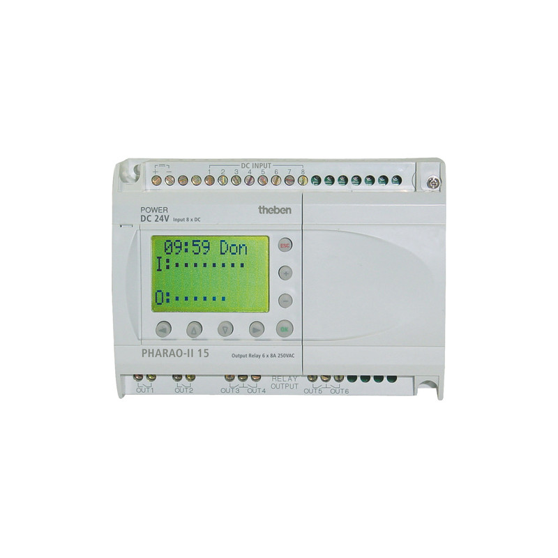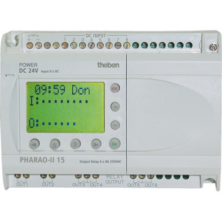 Emballage: 1Référence: PHARAO II 15Marque: TEMPOLECRéférence fabricant: 215073EAN: 4003468575109Description: MODULE LOGIQUE PROGRAMMABLE 24VDC 8IN / 6OUT 8A