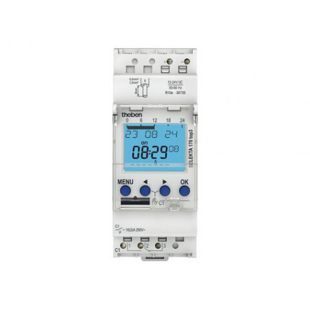 Emballage: 1Référence: SELEKTA 170 TOP3 12-24VMarque: THEBENRéférence fabricant: 1704130EAN: 4003468170502Description: HORLOGE DIGITALE ASTRONOMIQUE 12-24VAC/DC 1CO 16A