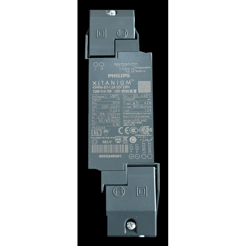 Description: (AS)Xitanium 43W/m 0.7-1.2A 52V 230V 900mA Anti Traction + male con.