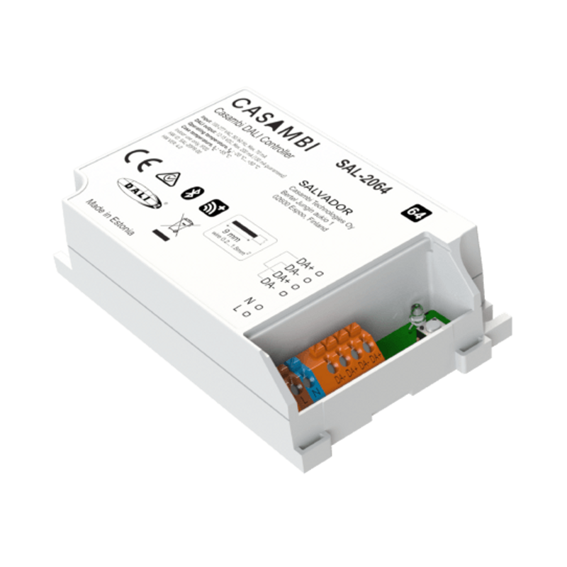 Description: Contrôleur 64 adresses DALI D4i, DT6, DT8 filaires vers réseau CASAMBI (avec alim.Dali intégrée)