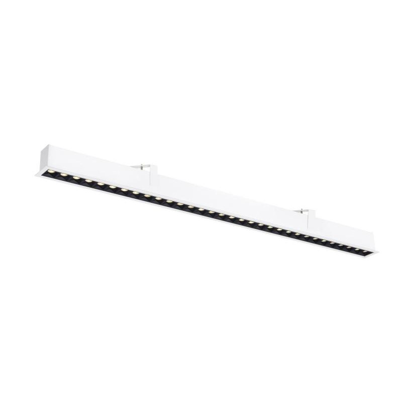 Emballage: 1 - 10 Marque: SLVRéférence: 1010521EAN: 4024163315036Description: GLENOS® PRO, plafonnier encastré, 1,2m, DALI, UGR19, 3000K, 75°, IP20, blanc / noir
