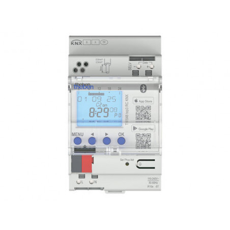Description: INTERRUPTEUR HORAIRE DIGITAL 8 CANAUX, ASTRO-ANNUEL, APP VIA BLUETOOTH, KNX DATA SECURE, GPS/DCF