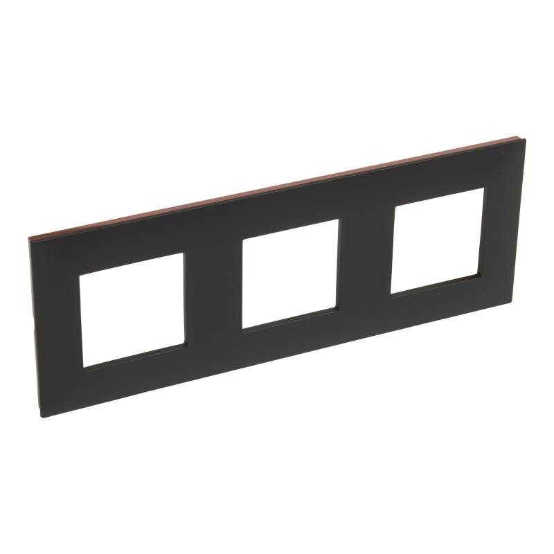 VALENA NEXT plaque 3 postes hor/vert entraxe 71mm noir cuivre / Non stocké! / Emballage: 1