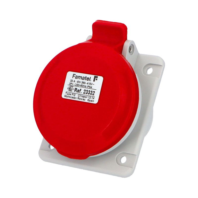 Emballage: 1Référence: 23332Marque: FamatelRéférence fabricant: 23332EAN: 8429760216438Description: SPEEDPRO - PRISE ENCASTRÉE INCLINÉ 32A 4P 6H 400V IP54