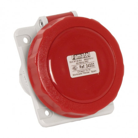 Emballage: 1Référence: 24332Marque: FamatelRéférence fabricant: 24332EAN: 8429760216643Description: SPEEDPRO - PRISE ENCASTRÉE INCLINÉ 32A 3P+T (4P) 6H 400V IP67