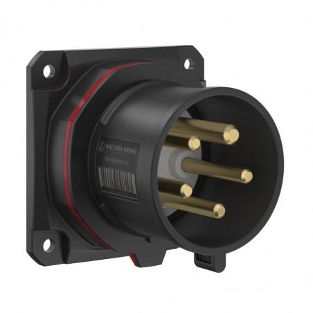 Description: NEO SOCLE CONNECTEUR MURAL DROIT 32A 5P 11H IP54 400V INVERSEUR DE PHASES, AVEC RACCORDS À VISSER