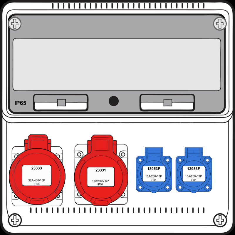 Description: BOÎTE MURALE COMBI MEDIUM - 1X 16A 5P 400V + 1X 32A 5P 400V + 2X MONO 230V