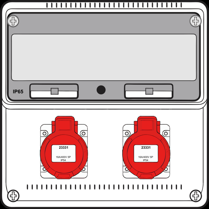 Description: BOÎTE MURALE COMBI MEDIUM - 2X 16A 5P 400V - INT + DISJ (2) - 10KA