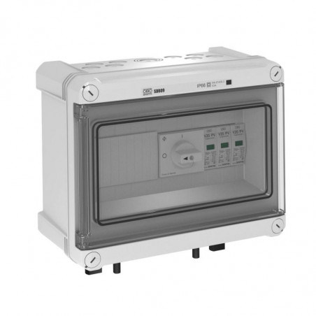 Emballage: 1 Marque: OBORéférence: 5088501EAN: 4012196792207Description: Coffret de protection PV 1 string sur 1 WR avec raccord