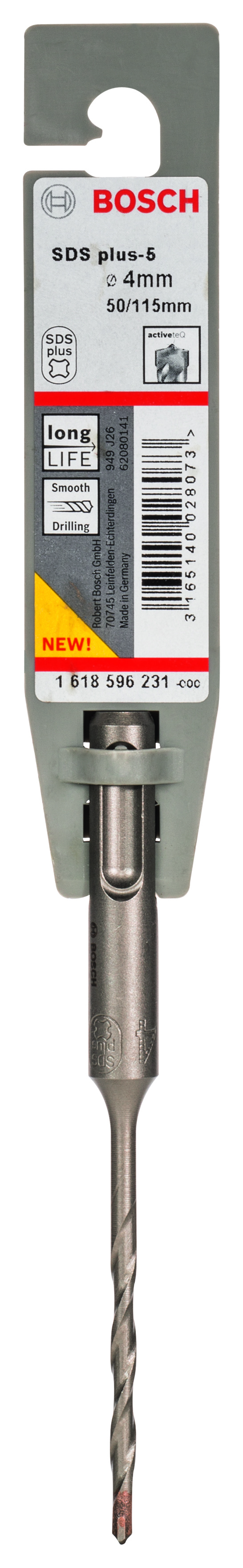 Emballage: 1Marque: BoschRéférence: 1618596231EAN: 3165140028073Description: Foret SDS-Plus-5 pour perforateur, 4 x 50 x 115 mm