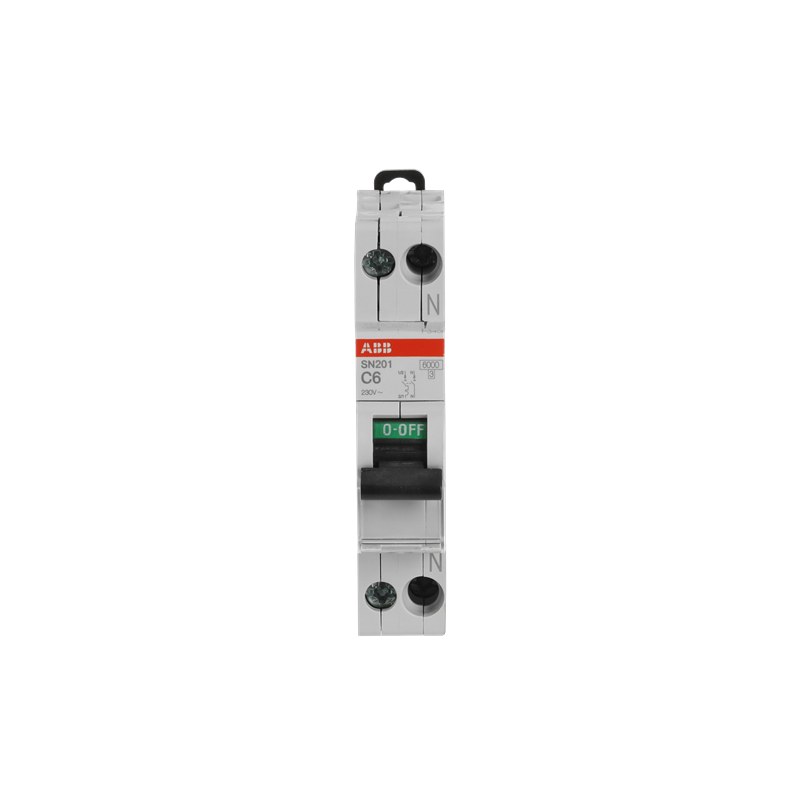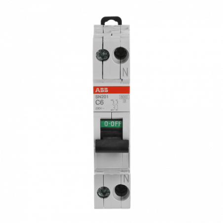 Emballage: stukMarque: ABB Industrial SolutionsRéférence: 2CSS255101R0064 / 6-digit: / Code court: SN201-C6EAN: 8012542091653Description: DISJONCTEUR SÉRIE SN200 6KA, 1P+N, CURVE C, 6A
