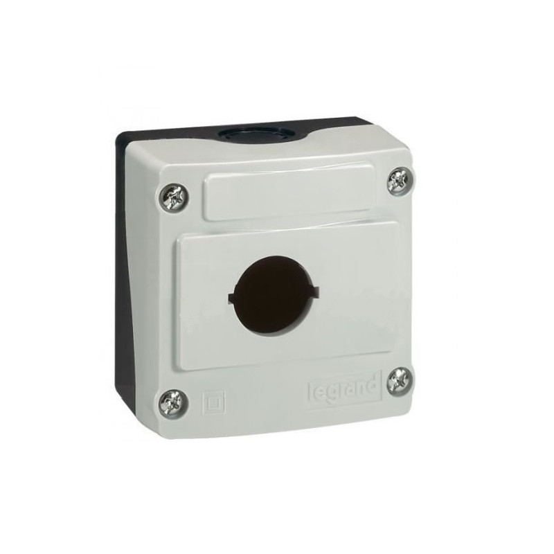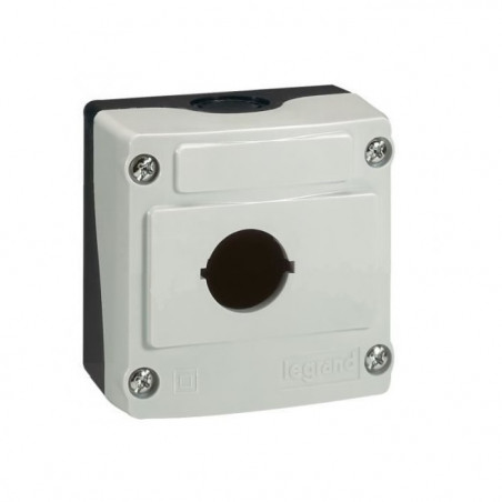 Description: Boîte à boutons vide OSMOZ - 1 trou - gris - possibilité de monter 3 blocs par trou - pr têtes de commande et de signalisation lumineuse ou non lumineuses - IP 66