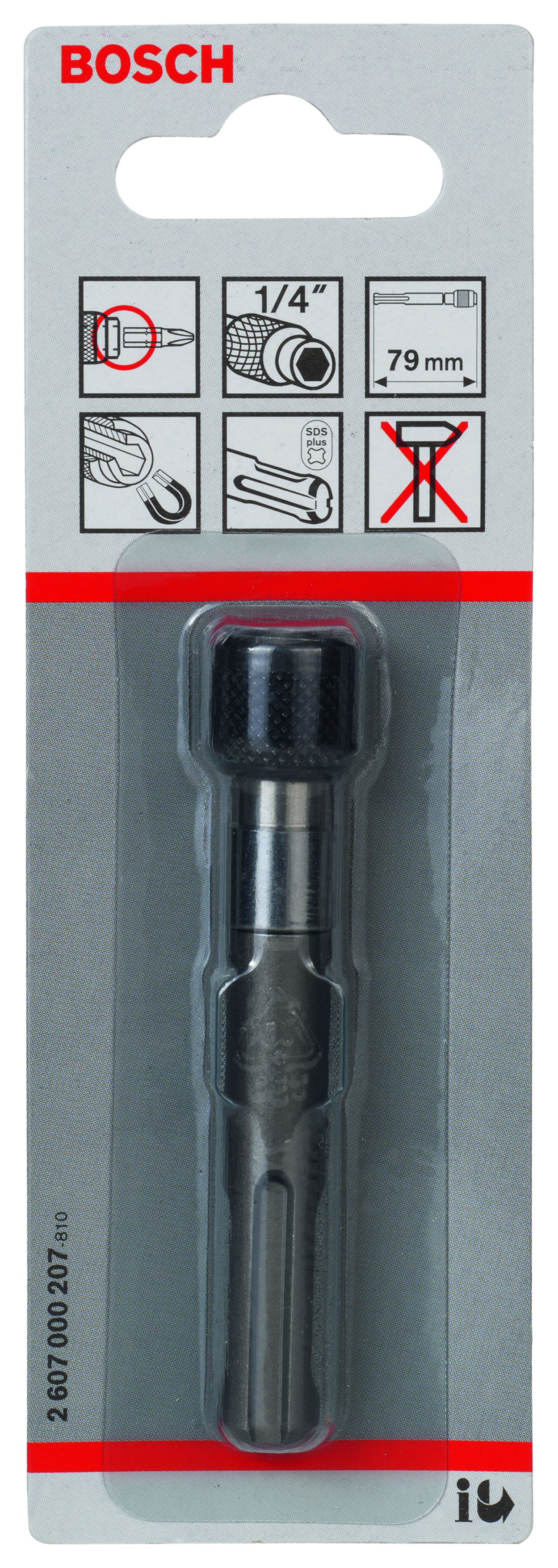 Emballage: 1Marque: BoschRéférence: 2607000207EAN: 3165140043380Description: Porte-embout universel 1/4'', 79 x 11 mm