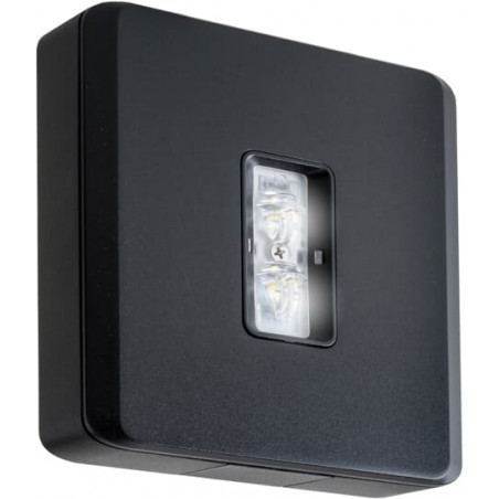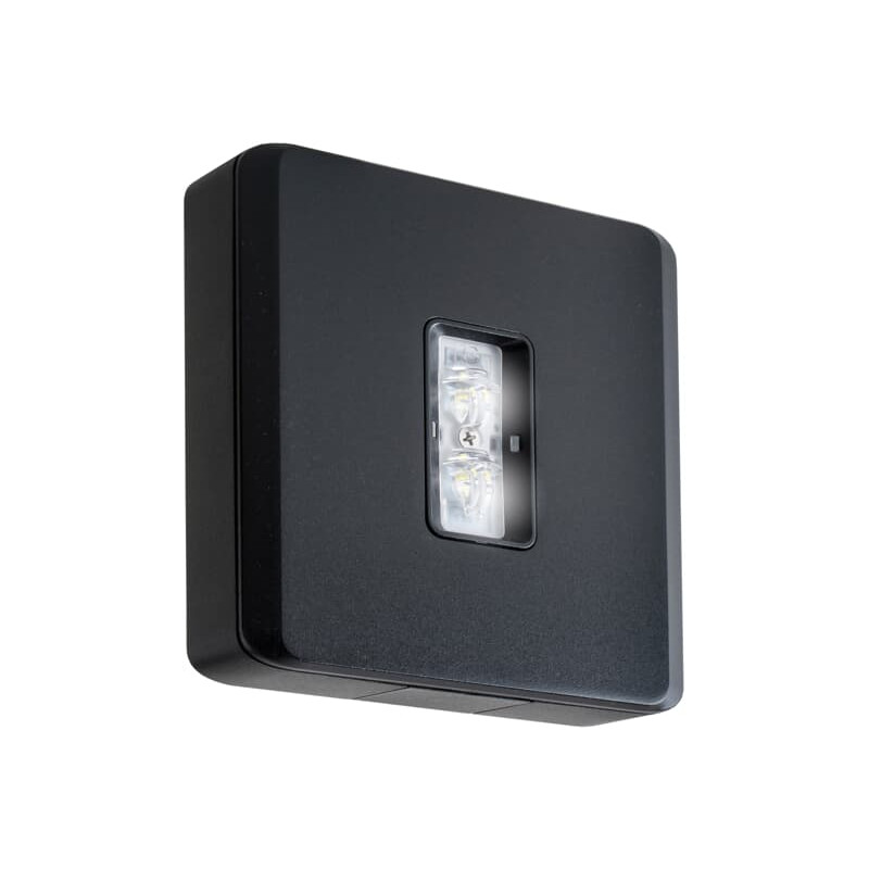 Description: ECLAIRAGE DE CHEMIN DE FUITE MONTAGE MURAL HAUTEUR JUSQU'À 4 M + LENTILLE G CENTRALISÉ 230 V AC/DC EN SAILLIE CARRÉ MONTAGE MURAL NOIR LED SÉRIE EVAGO