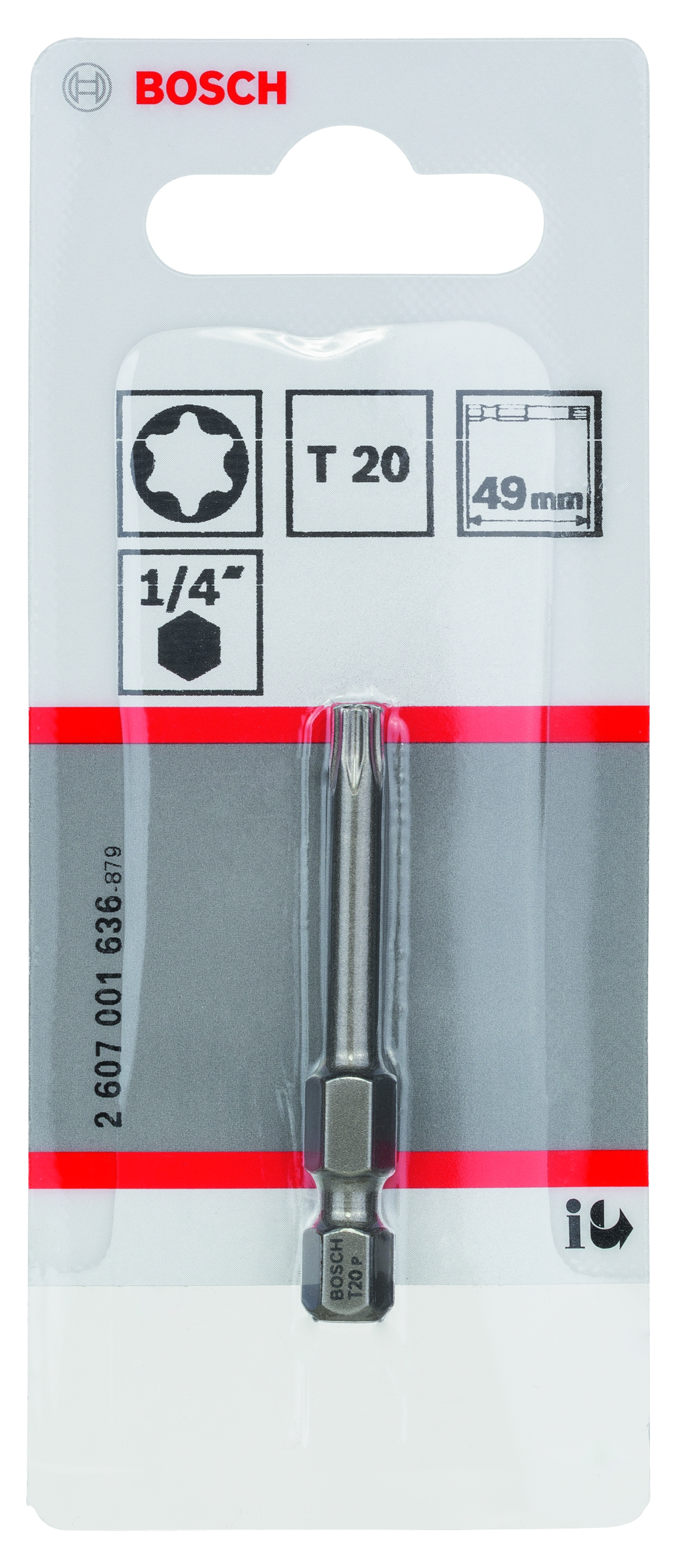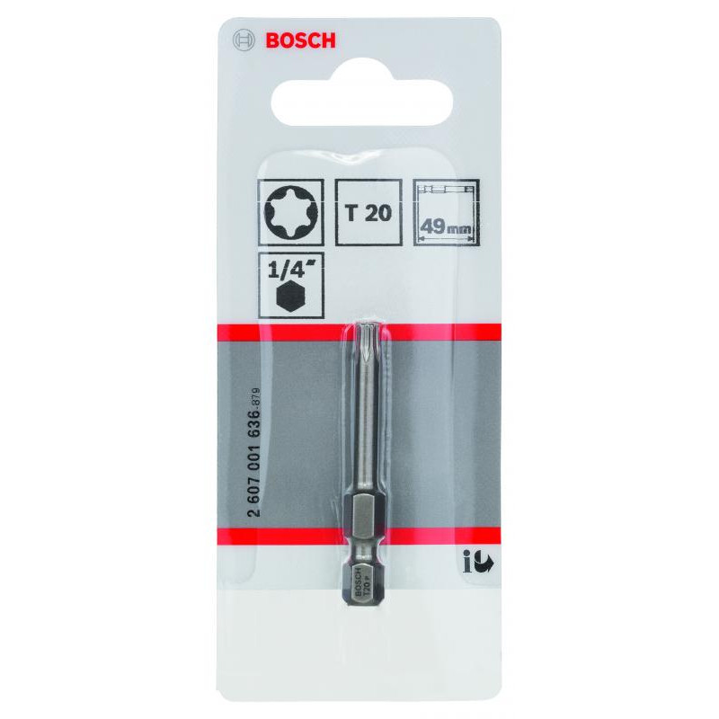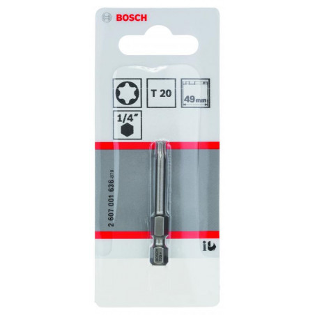 Emballage: 1Marque: BoschRéférence: 2607001636EAN: 3165140301626Description: Embout de vissage extra-dur T20, 49 mm