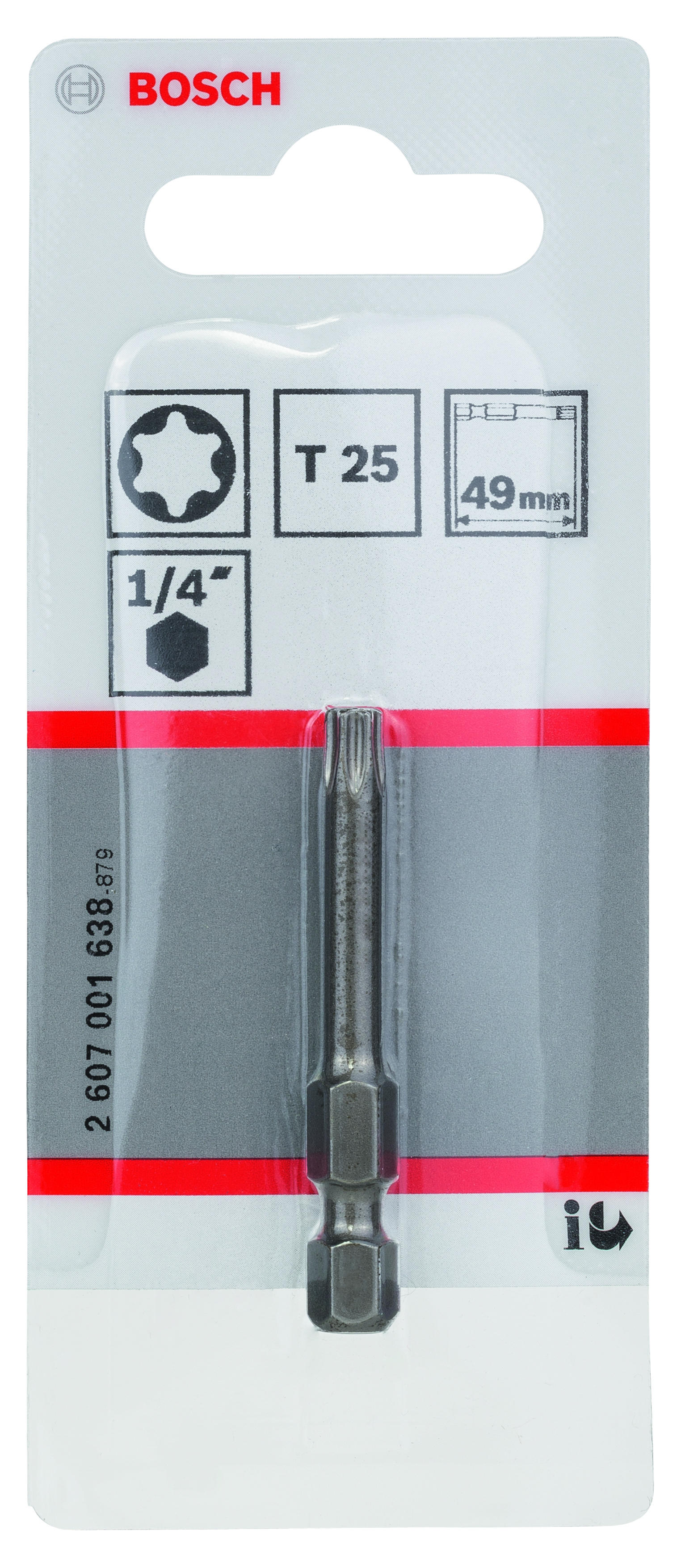 Emballage: 1Marque: BoschRéférence: 2607001638EAN: 3165140301640Description: Embout de vissage extra-dur T25, 49 mm