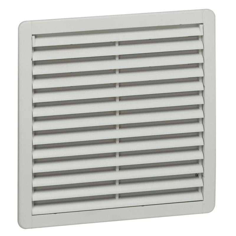 Description: Ventilateur avec ouïe plastique 40/160 m²/h - IP 54 - IK 08 - 230 V - 50/60 Hz - livré avec une paire d'ouïes 150 x 150 mm - RAL 7035
