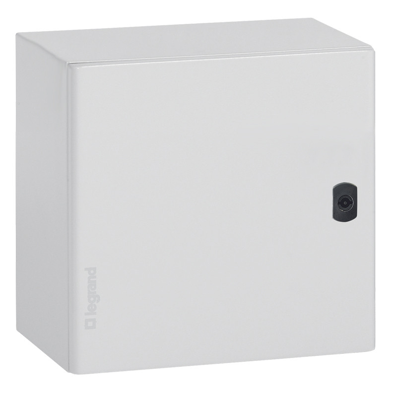 Description: Coffret métallique Atlantic dimension (h x l x p) 600 x 600 x 400 mm - IP 55 - IK 10 - RAL 7035 - poids 28 kg - porte réversible - livré avec accessoires de fixation des équipements