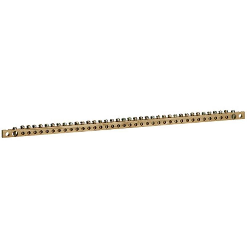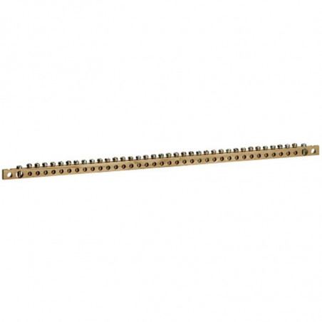 Description: Barre à trous pour connecteur de protection - longueur 446 mm - 24 modules - se fixe sur les montants fonctionnels à l'aide des pattes fournies pour armoire XL³/XL³S