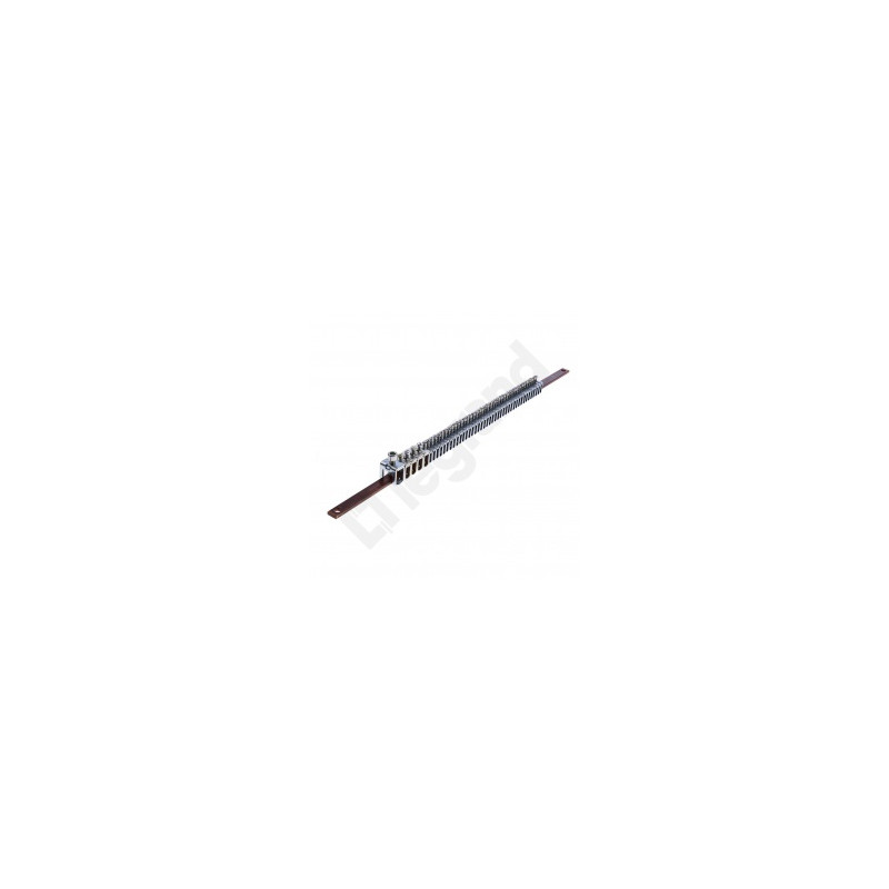 Description: Barre cuivre plate 12 x 4 mm avec étriers - longueur 455 mm - livrée avec connecteurs à étrier (40 de 1,5 à 4 mm², 4 de 6 à 16 mm² et 1 de 35 mm²)