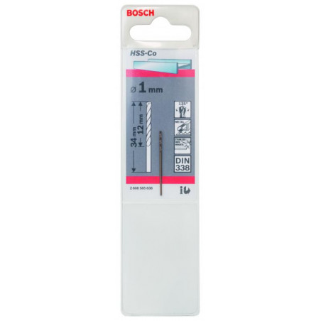 Emballage: 1Marque: BoschRéférence: 2608585838EAN: 3165140520737Description: Foret à métaux rectifiés HSS-Co, DIN 338, 1 x 12 x 34 mm