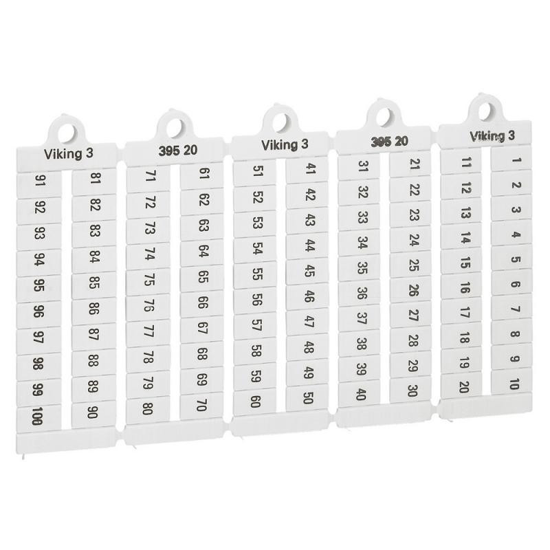 Description: Plaques de repères pour blocs de jonction VIKING 3 au pas de 6 mm - chiffres 1 à 100 - lecture horizontale
