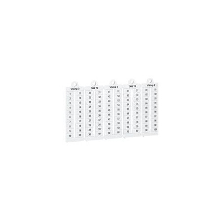 Description: Plaques de repères pour blocs de jonction VIKING 3 au pas de 5 mm - chiffres 1 à 100 - lecture verticale