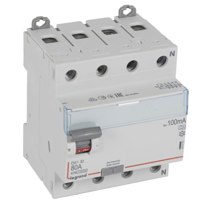 Description: Interrupteur différentiel DX³ 4P 100mA 80A Type A - 4 modules