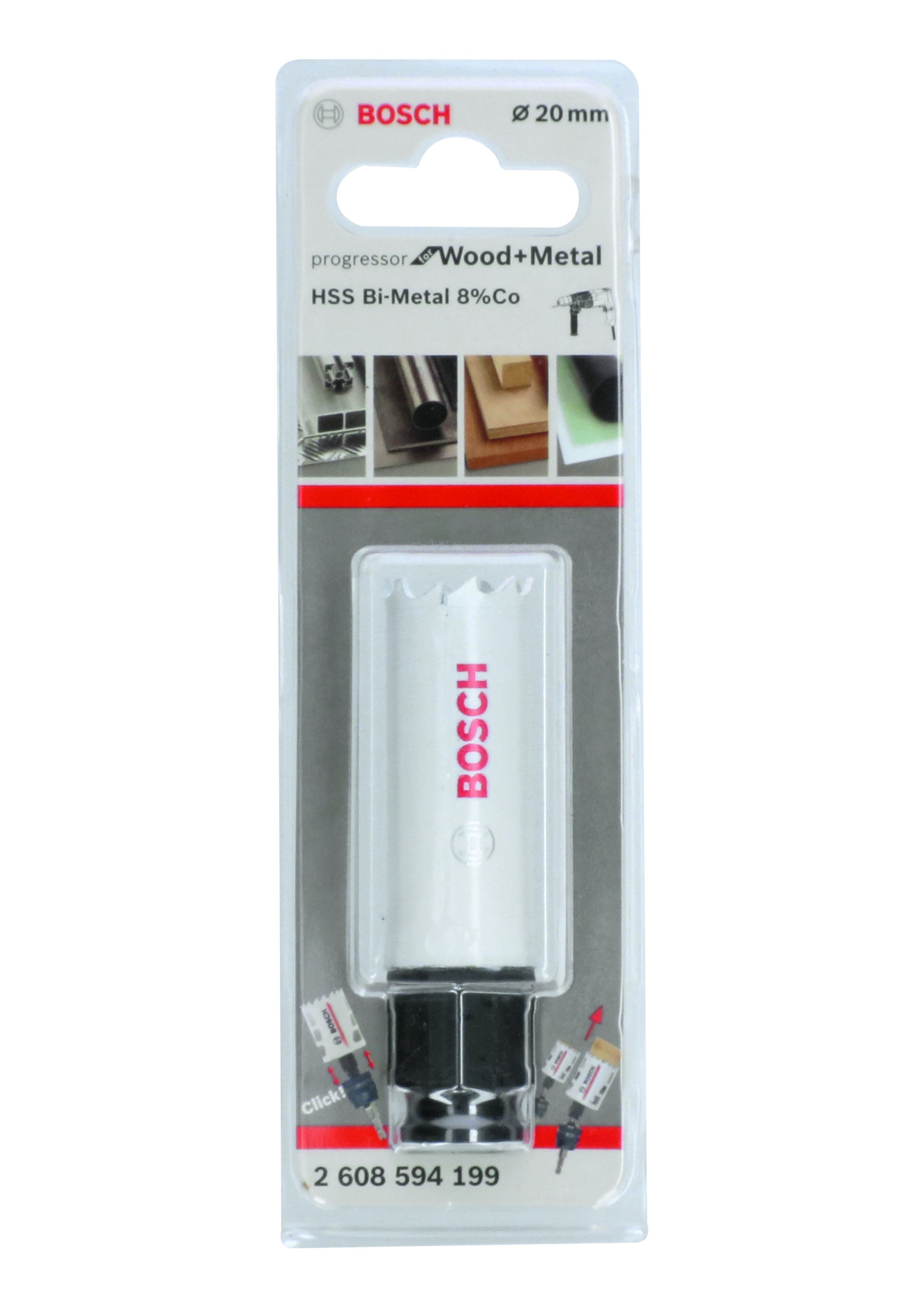 Emballage: 1Marque: BoschRéférence: 2608594199EAN: 3165140949682Description: Scie-trépan Power-Change, Wood and Metal 20 mm