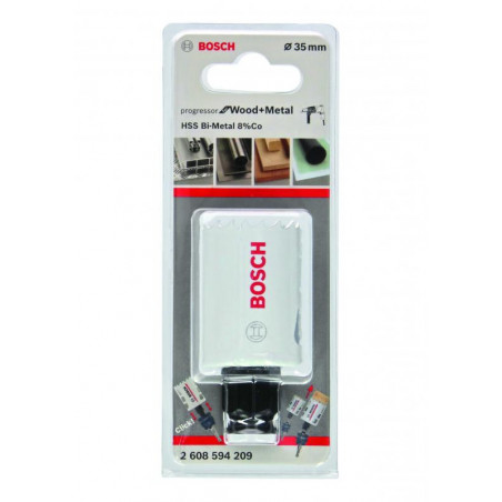 Emballage: 1Marque: BoschRéférence: 2608594209EAN: 3165140949781Description: Scie-trépan Power-Change, Wood and Metal 35 mm