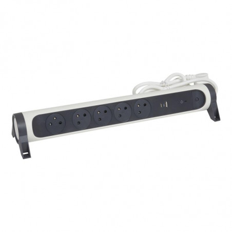 Multipr.FB 5X2P+T Prem. paraf. USB A+C 1.5M 1.5mm² blanc/noi / Non stocké! / Emballage: 5 - 5 - 95