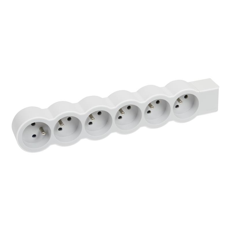 Emballage: 10 - 10 - 520 Marque: LegrandRéférence: 049499EAN: 3414971944206Description: Multiprise standard 6x2P+T sans câble blanc - noir