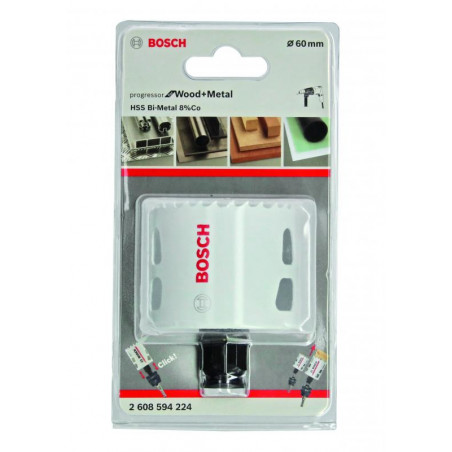 Emballage: 1Marque: BoschRéférence: 2608594224EAN: 3165140949934Description: Scie-trépan Power-Change, Wood and Metal 60 mm