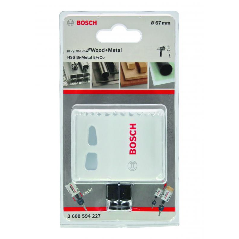 Emballage: 1Marque: BoschRéférence: 2608594227EAN: 3165140949965Description: Scie-trépan Power-Change, Wood and Metal 67 mm