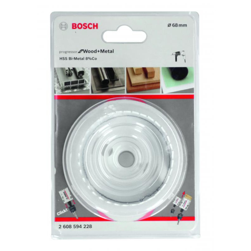 Emballage: 1Marque: BoschRéférence: 2608594228EAN: 3165140949972Description: Scie-trépan Power-Change, Wood and Metal 68 mm