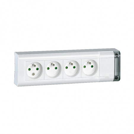 Description: Bloc multiprises d'installation standard - 4 prises 2 P + T avec sécurité - 10/16 A - 3500 W en 250 V - blanc - sans cordon - esthétique Mosaic