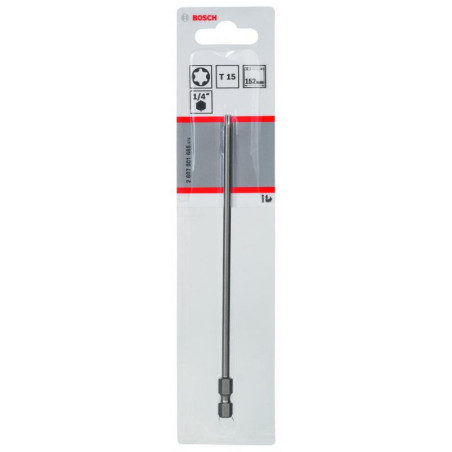 Emballage: 1Marque: BoschRéférence: 2607001666EAN: 3165140301923Description: Embout de vissage extra-dur T15, 152 mm